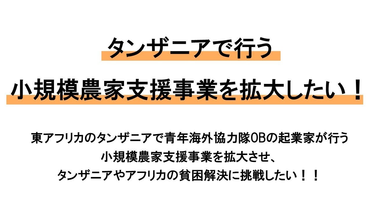 タンザニアの貧困削減のため、100名の農家さんと一緒に農業ビジネスを始める資金の一部に使います。
