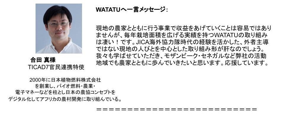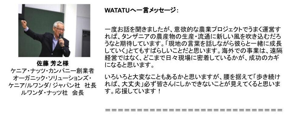 WATATUの取り組みを通して、一人でも多くの人が貧困から脱出できれば、このような農家さんたちの温かい思いが実現されていきます。