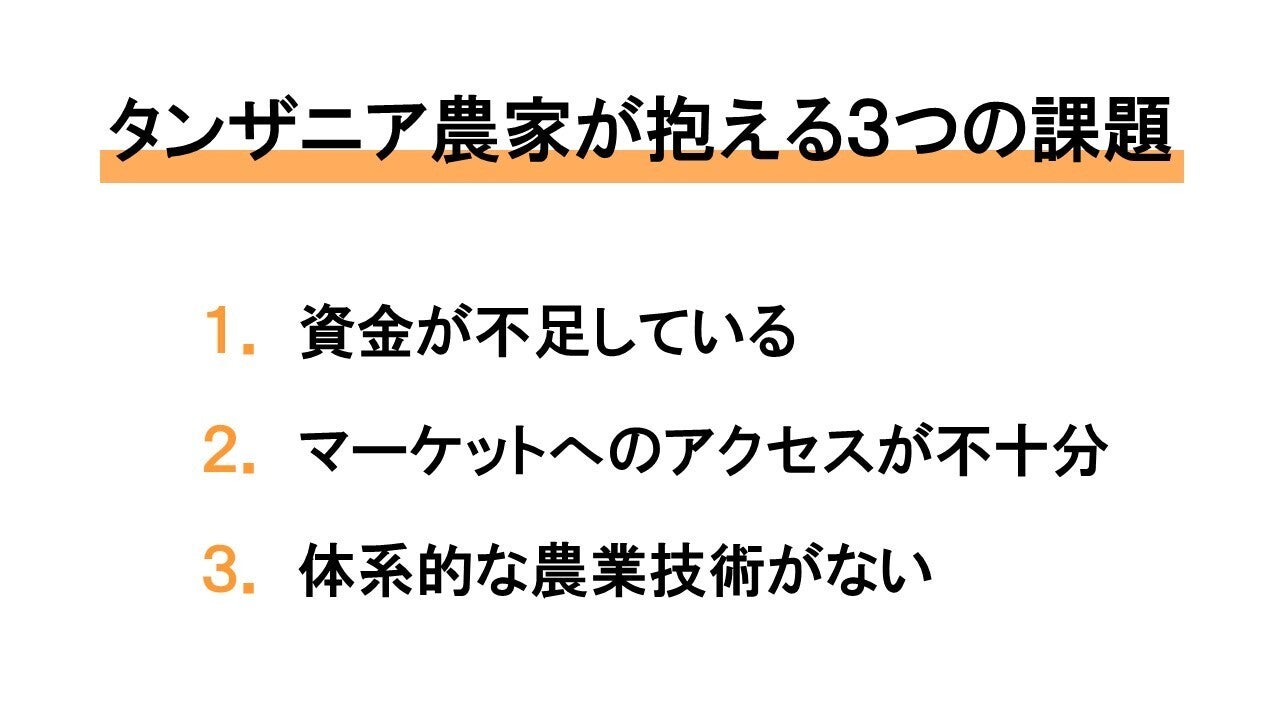 タンザニア国民の約7割が農家であり、そのほとんどが自らの土地を持たない小作農です。