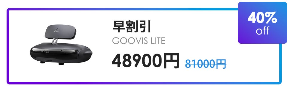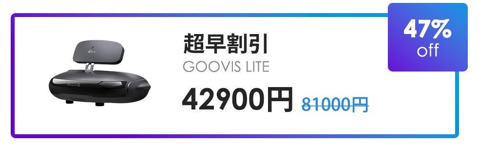 GOOVIS LITEの仮想スクリーンは、600インチもの大画面で表示されます。視野角も42度と広く、外出先でも目の前が映画のように臨場感あふれる映像となり、これまでにない没入的な視聴体験がいつでもどこでも可能です。