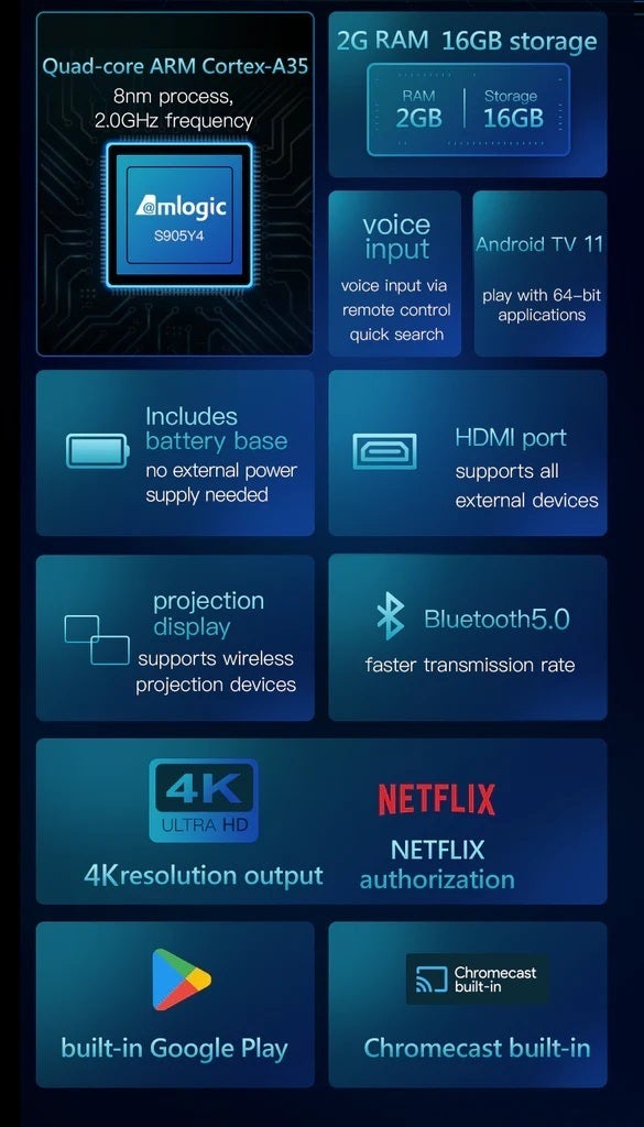 GOOVISを使用すれば、Netflix、YouTube、Prime Video、Disney+などのストリーミングプラットフォームを他のデバイスに接続することなく、バッテリー内蔵で画像に問題がなく視聴することができます。