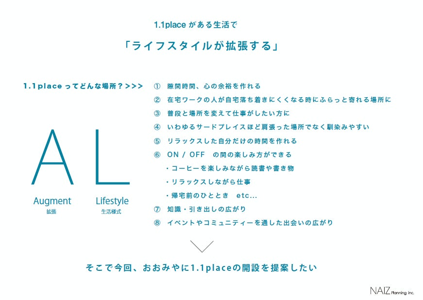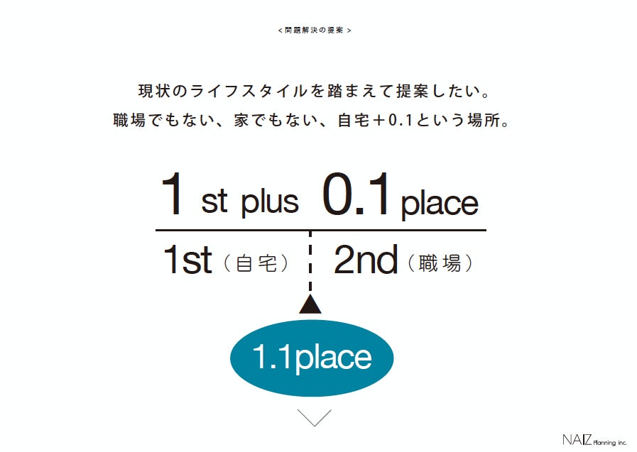 職場でもない、家でもない、自宅+0.1という場所。→”1.1プレイス” を作ることです。