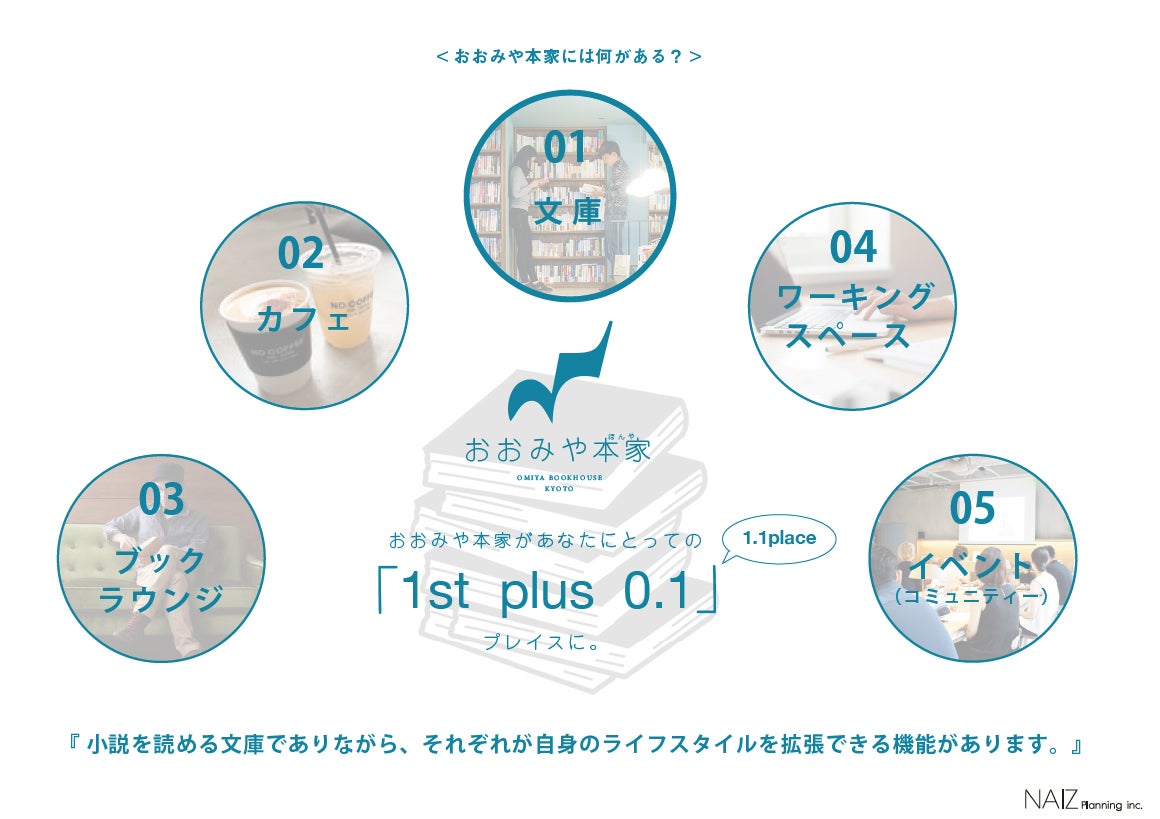 オープンから5年先を見据えた際に、私たちが目指すことは「おおみや本家」の認知が広がる先に、同じく「本の家」としての拠点を近隣に増やしていくこと。(アート本の家、絵本の家など、様々なジャンルを網羅できるように。)空き町家の活用や、本に触れるために大宮地域に訪れる人の増加で、「本の町」としての定着と、近隣の地域経済活性化を目指します。