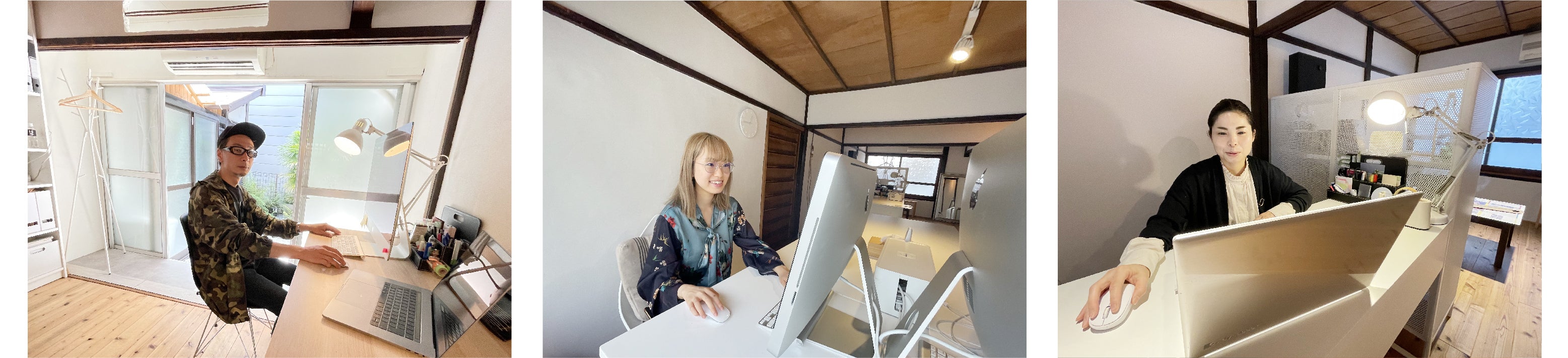左: Director / Katsuhiko Izuta 中: Designer / Risa Kanzaki 右 : Management / Yuka