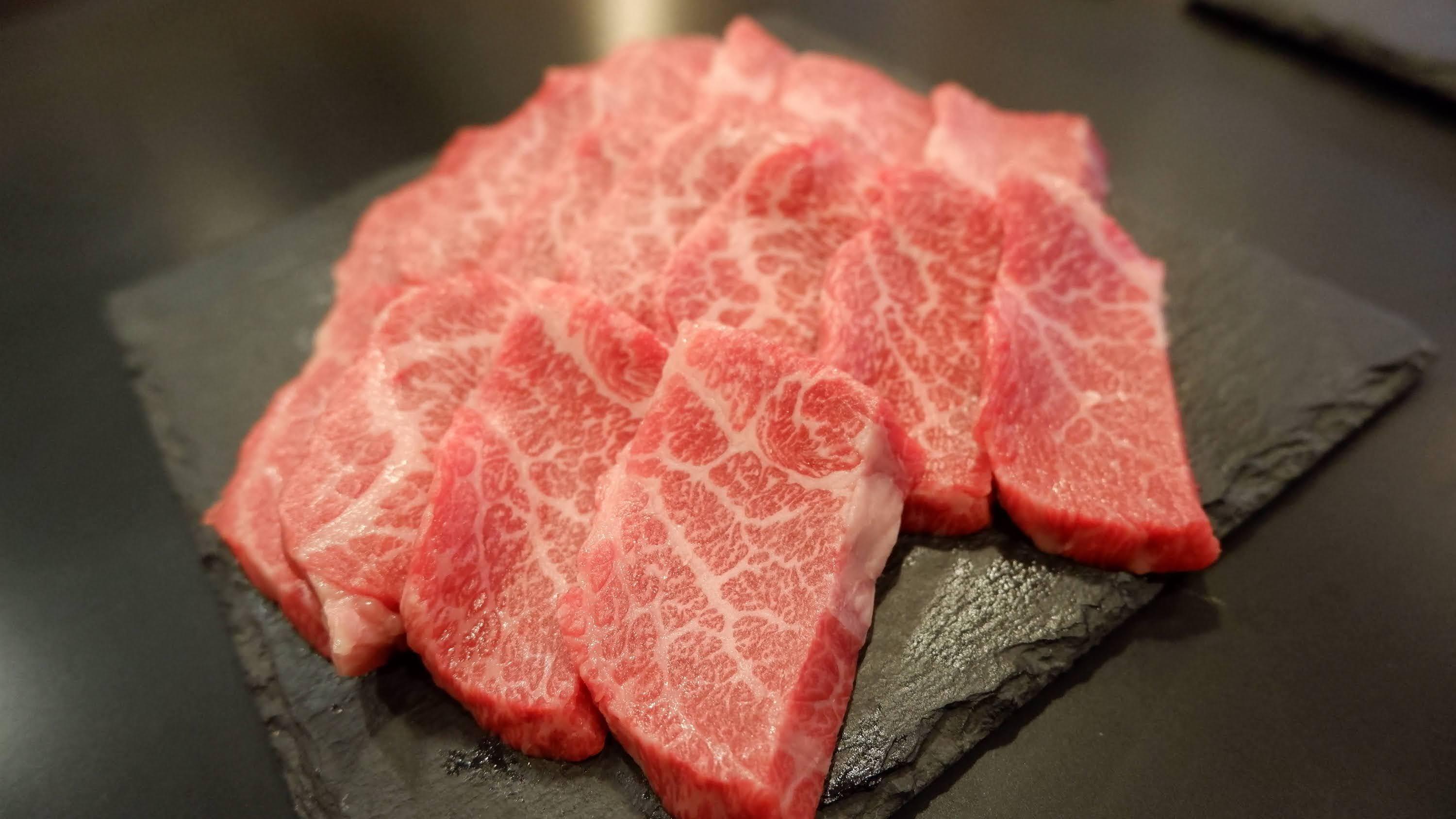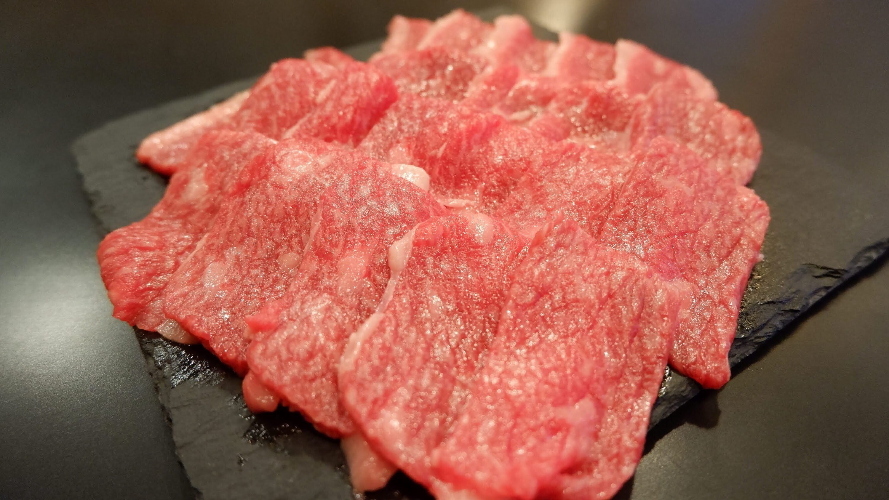 東京芝浦食肉卸市場で、その道55年のベテラン目利きにより、厳選された黒毛和牛メス牛田村牛の「上カルビ+カルビ」の焼肉セットです。柔らかい肉質と脂肪に含まれる不飽和脂肪酸の多さが特徴です。この不飽和脂肪酸は、融点が低く、口に入れた瞬間に、甘みと旨味が広がります!
