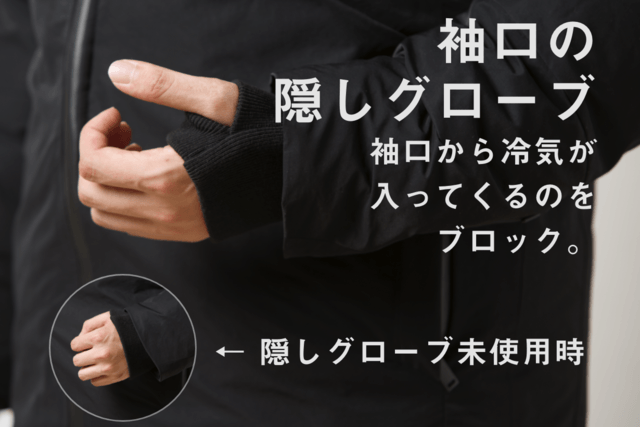 また表地、裏地の内側にダウンパックと呼ばれるダウンの吹き出しを内側で抑える内部構造を採用。