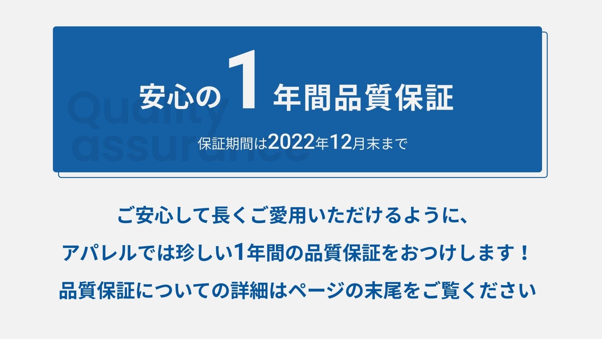 初期不良に関しては当然ですが、すべて無償保証の対象とさせて頂きます。