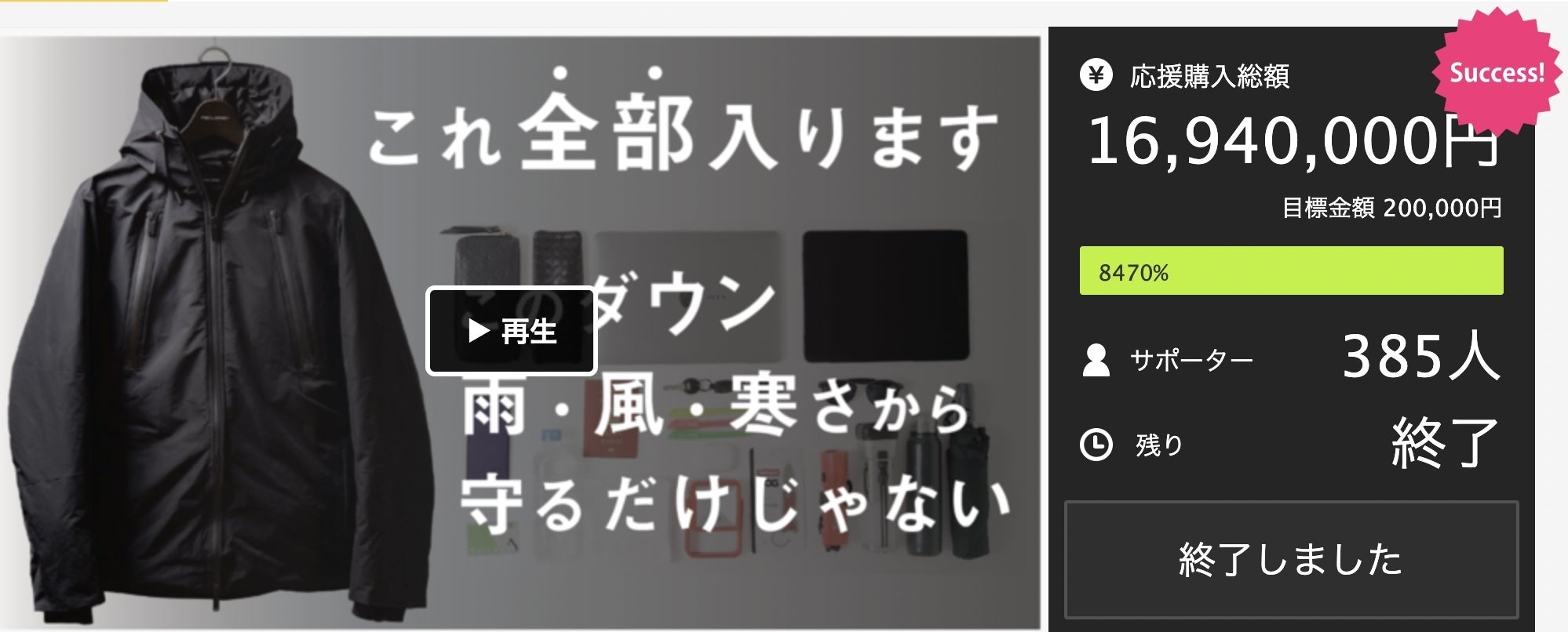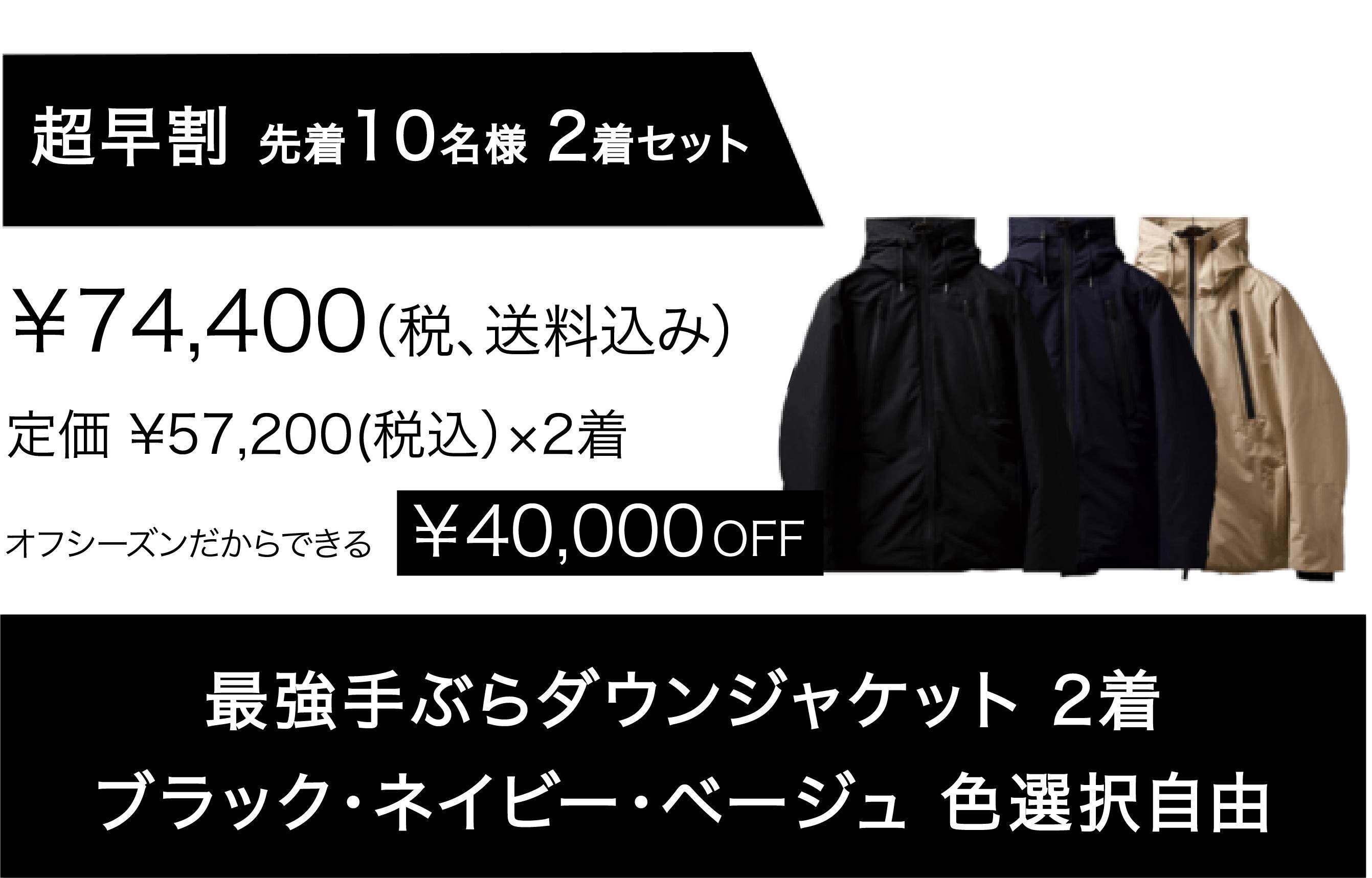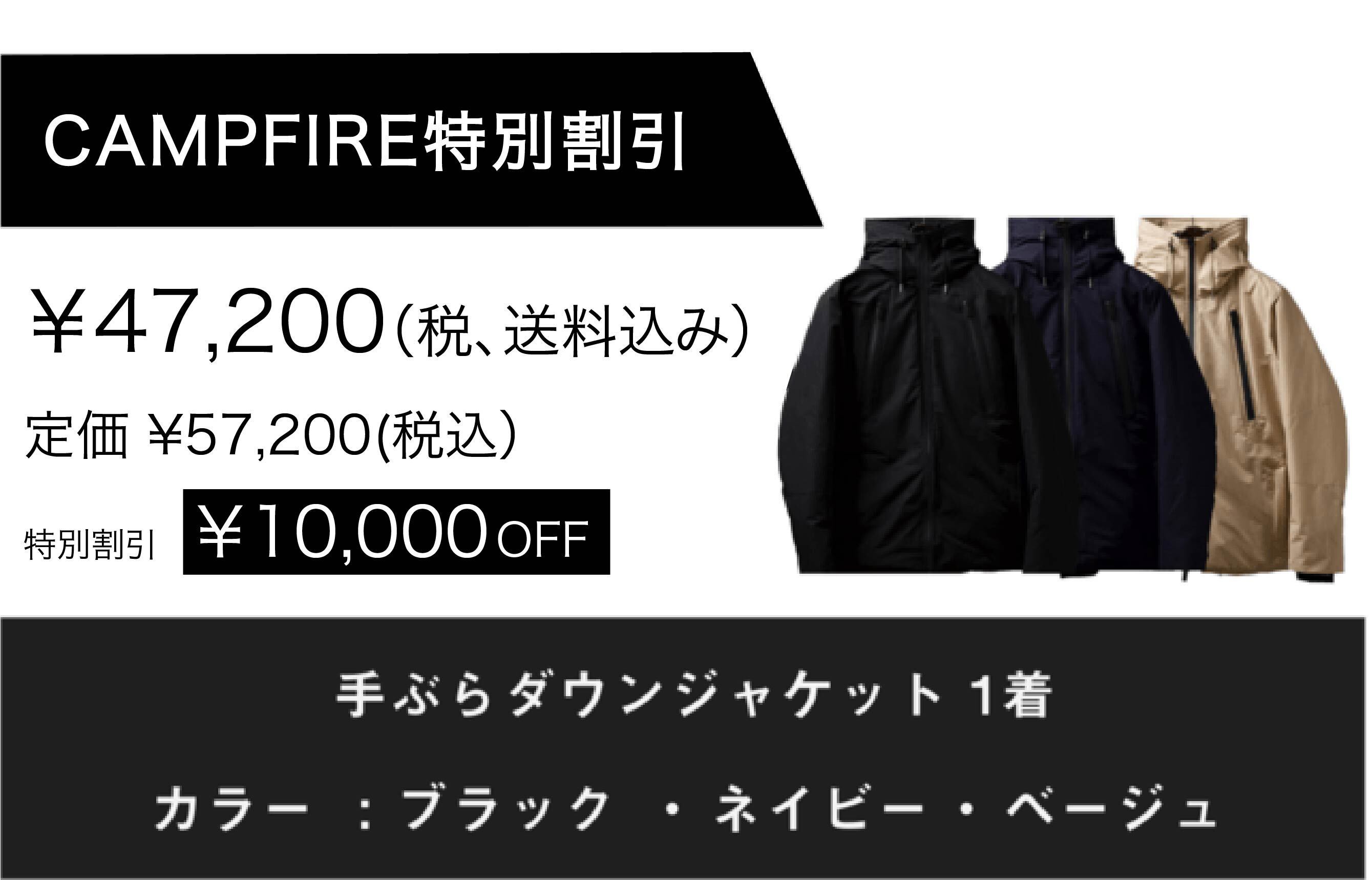 『NEW最強手ぶらダウンジャケット』をCAMPFIRE限定のスペシャルプライスでご提供致します!!
