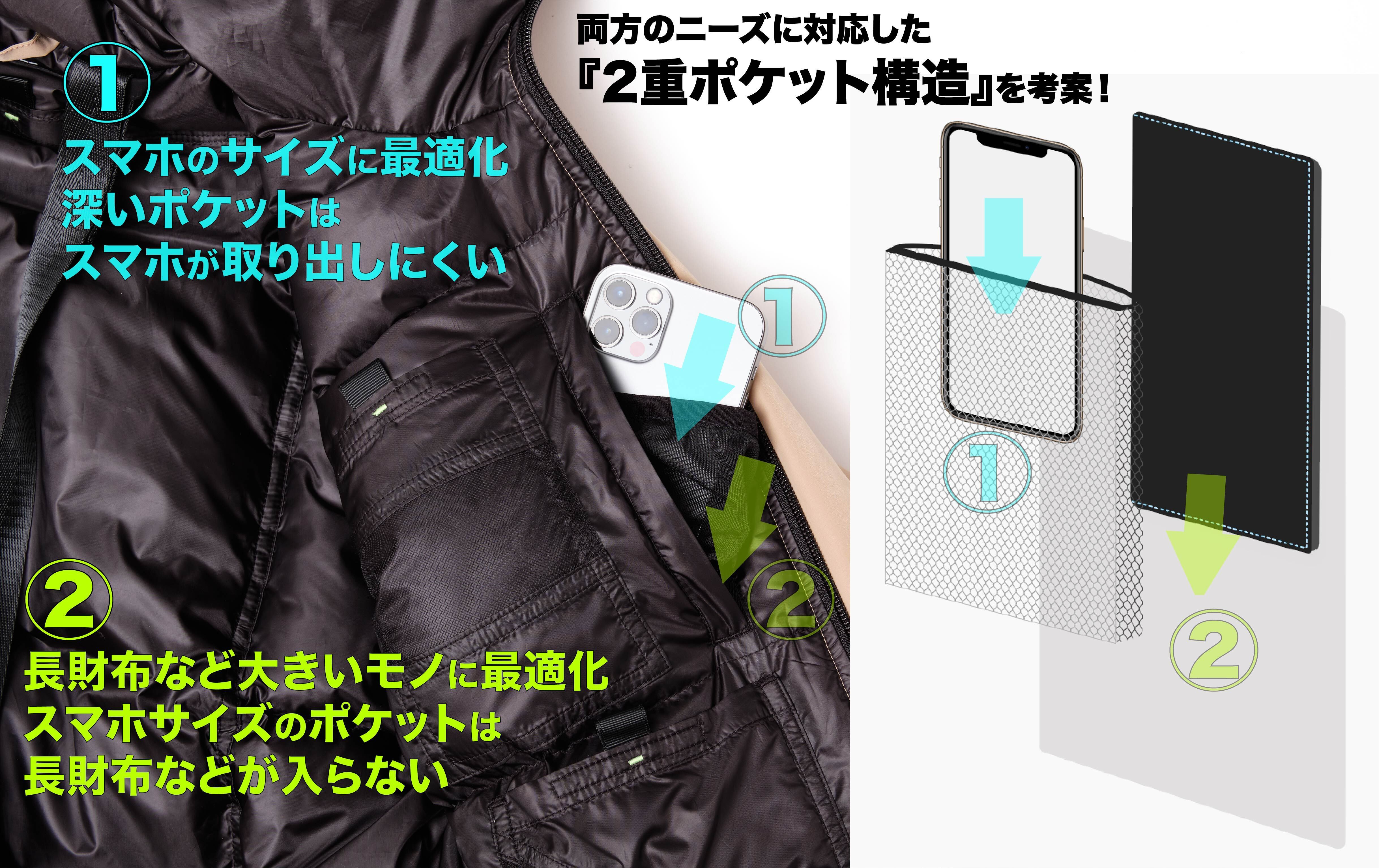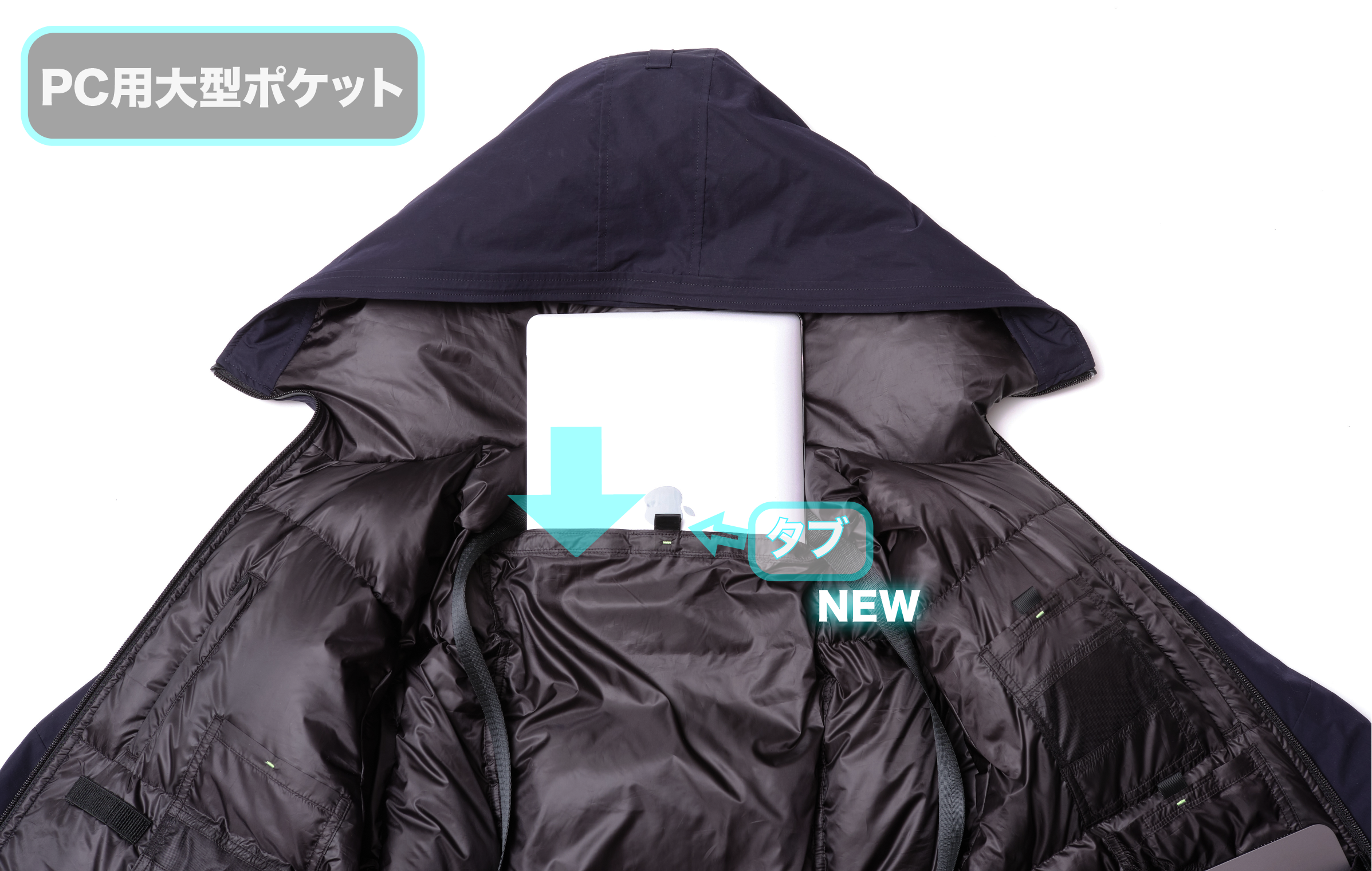 ノートPCがポケットinできる「超撥水」ダウンジャケット