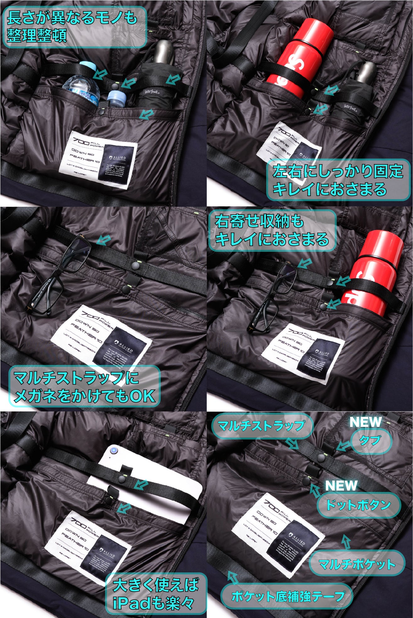 ④ マルチポケットとマルチストラップを『ベルクロ+ドットボタン』仕様に変更で利便性UP!