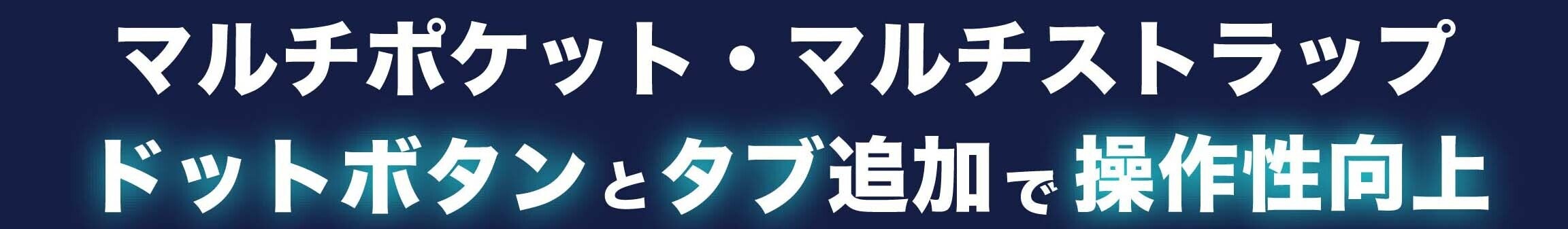 サイズ調整可能なマルチポケットとマルチストラップ×2個(左右1個ずつ)搭載。