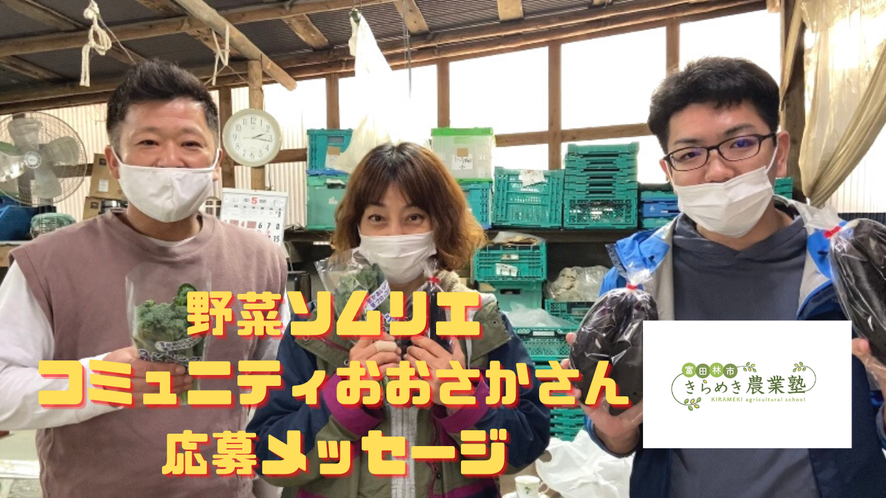 「野菜ソムリエコミュニティおおさか」さんから応援メッセージいただきました!農家にとって、お客さんとの懸け橋になってもらえるありがたい方々です。いつもありがとうございます