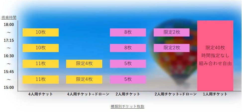 ※熱気球に1回に搭乗できる人数は4人までとなっておりますので選択の際はご確認お願いいたします。