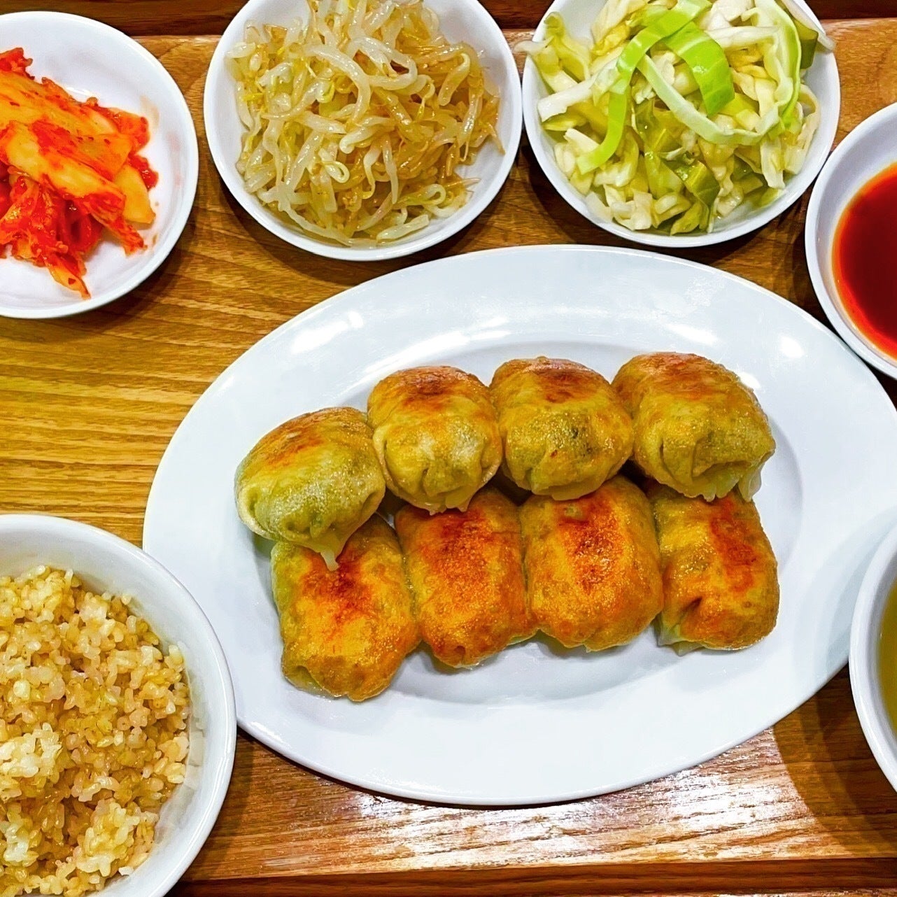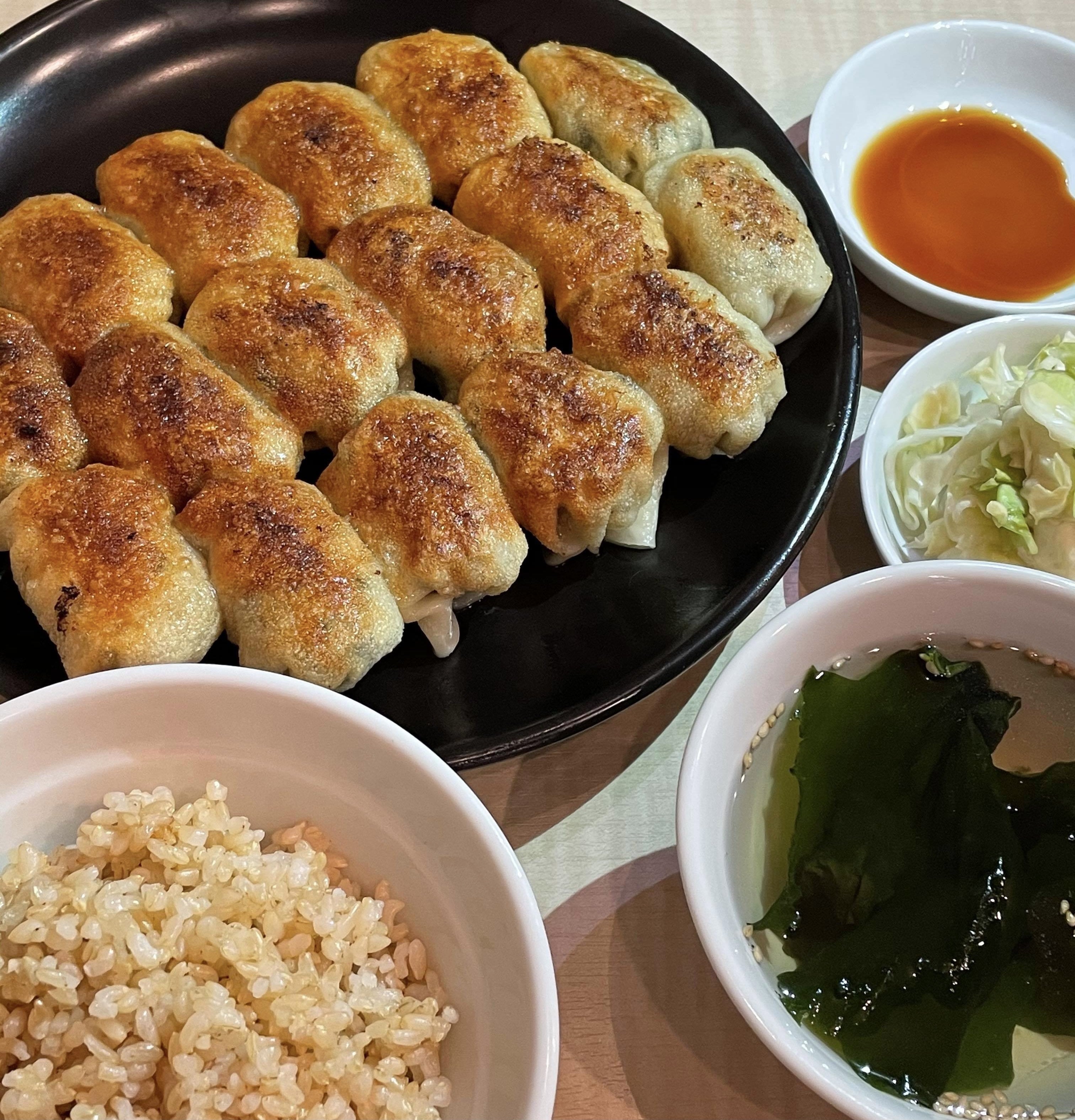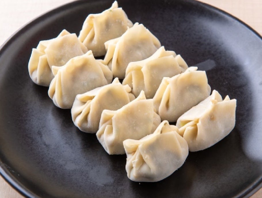 この腸活餃子は、独特な丸い形で、どこからたべても具材がたくさん入っています。