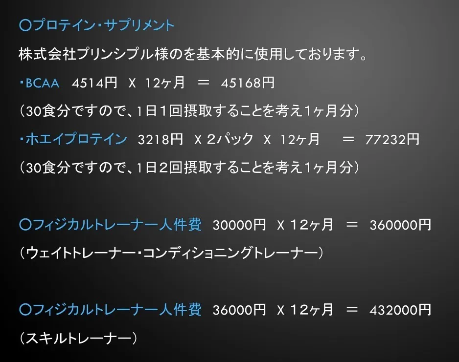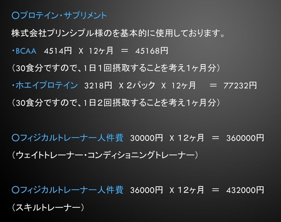 ・オフシーズンのトレーニング費