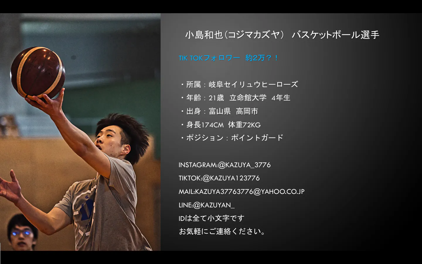 21歳 立命館大学4年生「岐阜セイリュウヒーローズ」に所属しています