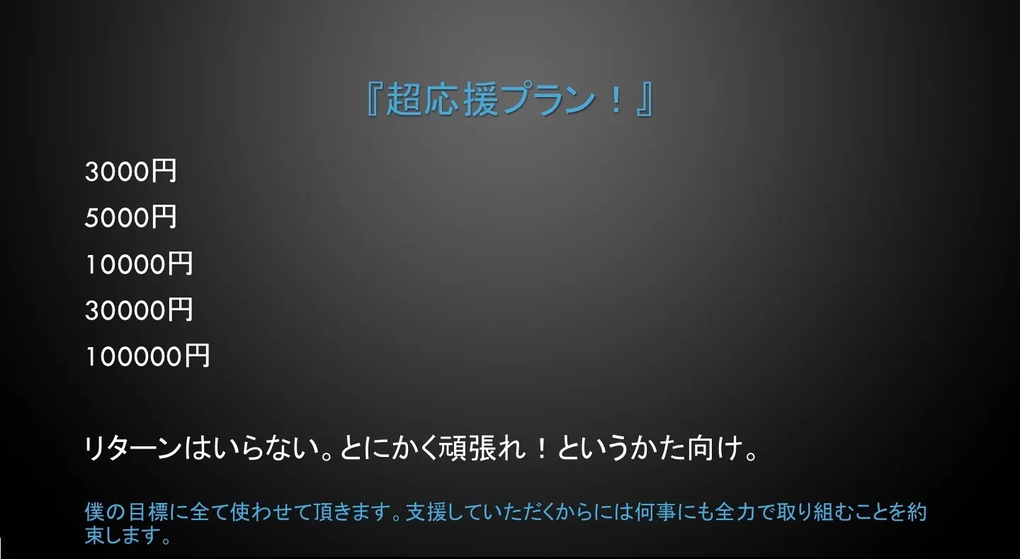 そして少しばかりでもいいので、ご支援していただけないでしょうか?