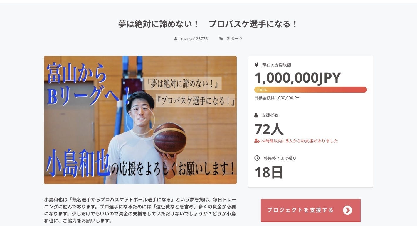目標金額は1,000,000円