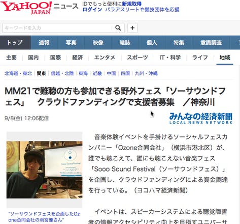 2017/09/08 21:51ヨコハマ経済新聞さんにご取材いただき、併せてYahoo!ニュースにも掲載していただきました!https://headlines.yahoo.co.jp/hl?a=20170908-00000022-minkei-l14 今回初開催予定の「ソーサウンドフェスティバル」は特殊なスピーカーを使い「難聴の方でもクリアに聴こえる無料野外音楽フェス」です。 難聴が原因で音楽フェスから離れてしまった方がたまたま、みなとみらいで買い物をしていたらクリアな音楽が聴こえ、そのままフェスに参加できるという機会をつくりたく企画したものです。 なので場所代は高いですが都市のど真ん中で、協賛企業もいませんが無料で開催することにこだわってます。その代わりこのフェスはこのクラウドファンディングが達成されなければ開催されません。 当たり前に誰にでも聴こえる音楽フェスがどれだけ民主的に開催されていくか、そのプロセスも大切に思っていて、皆様のお力添えを心よりお待ちしています。 https://camp-fire.jp/projects/view/40608 もっと見る