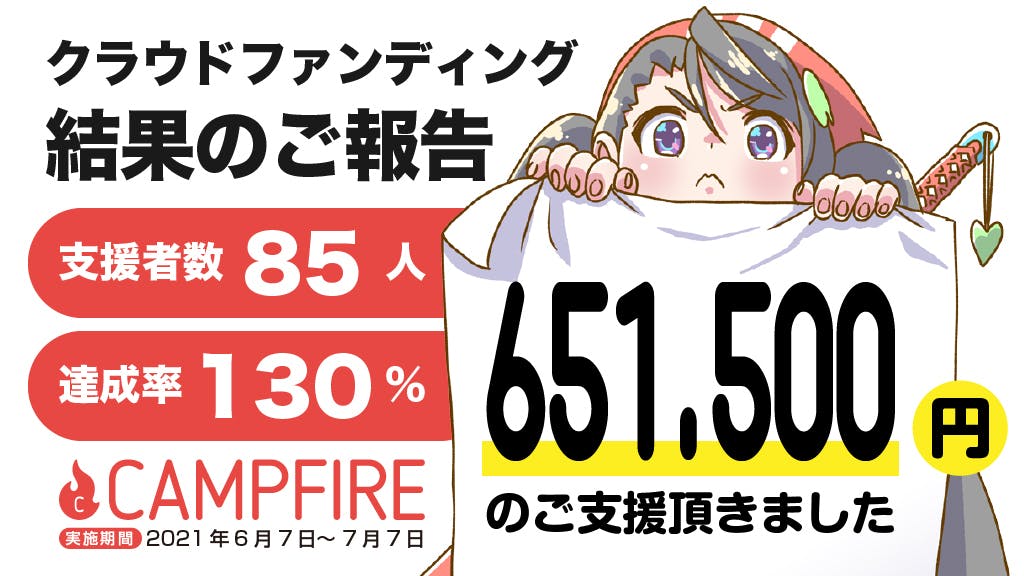 2021/07/08 10:31みなさん、こんにちは!!!あにまるしぇの石井です!昨日 7月7日23:59に、クラウドファンディングの挑戦が終了いたしました!【結果のご報告】●総支援額:651,500円●達成率:130%●支援者数:85人ご支援いただきました皆さまのお陰で無事に目標達成することが出来ましたー!!!本当にありがとうございます!!クラウドファンディングは終了しましたがぼくたちの挑戦はここから始まります!!11月7日は「あにまるしぇ」で笑顔で皆さんとお会いできることを楽しみにしております!!●四コマ漫画グランプリの詳細はこちらhttps://animarche.net/animarche1/4koma-20211107/ もっと見る