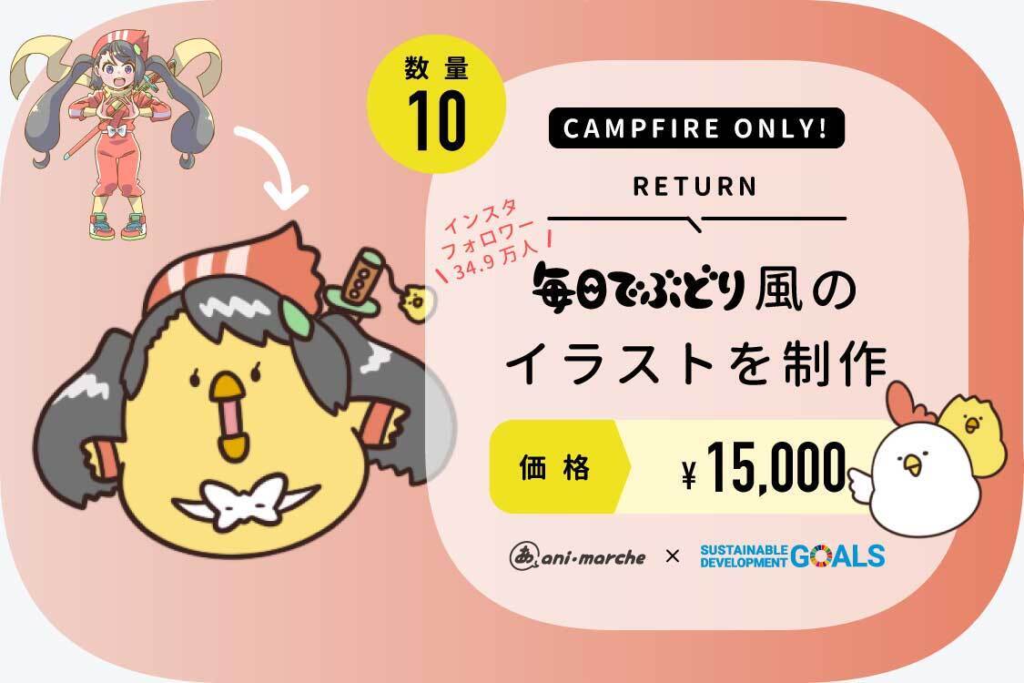 このリターンでは自分の写真を送ると、あなたを「毎日でぶどり」風のキャラクターにデフォルメしてイラストにして描いてくれます!
