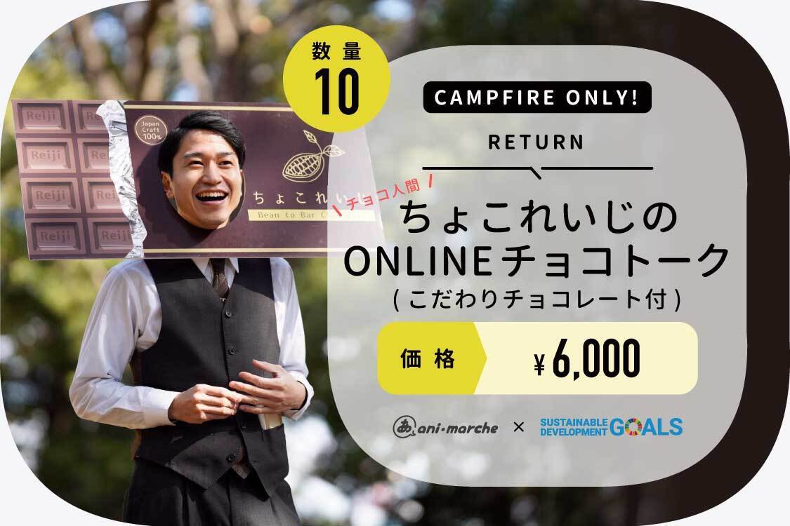 チョコレートを愛しすぎた男「ちょこれいじ」が日本中を旅する中で厳選したチョコを食べながら、オンラインでちょこれいじさんから、1対1でSDGsとチョコにまつわるお話をできます!