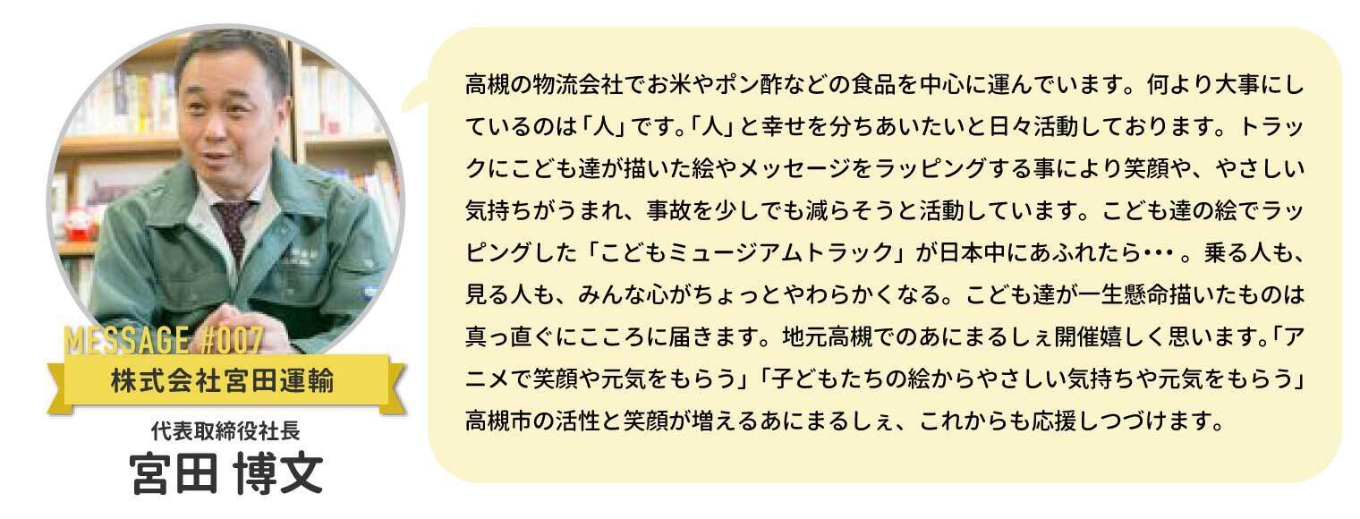 本日は、株式会社宮田運輸の宮田博文社長からの「応援メッセージ」と「追加リターン」のご紹介です!