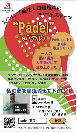 「東京にPadelが出来るって話を聞きました。頑張ってください!」