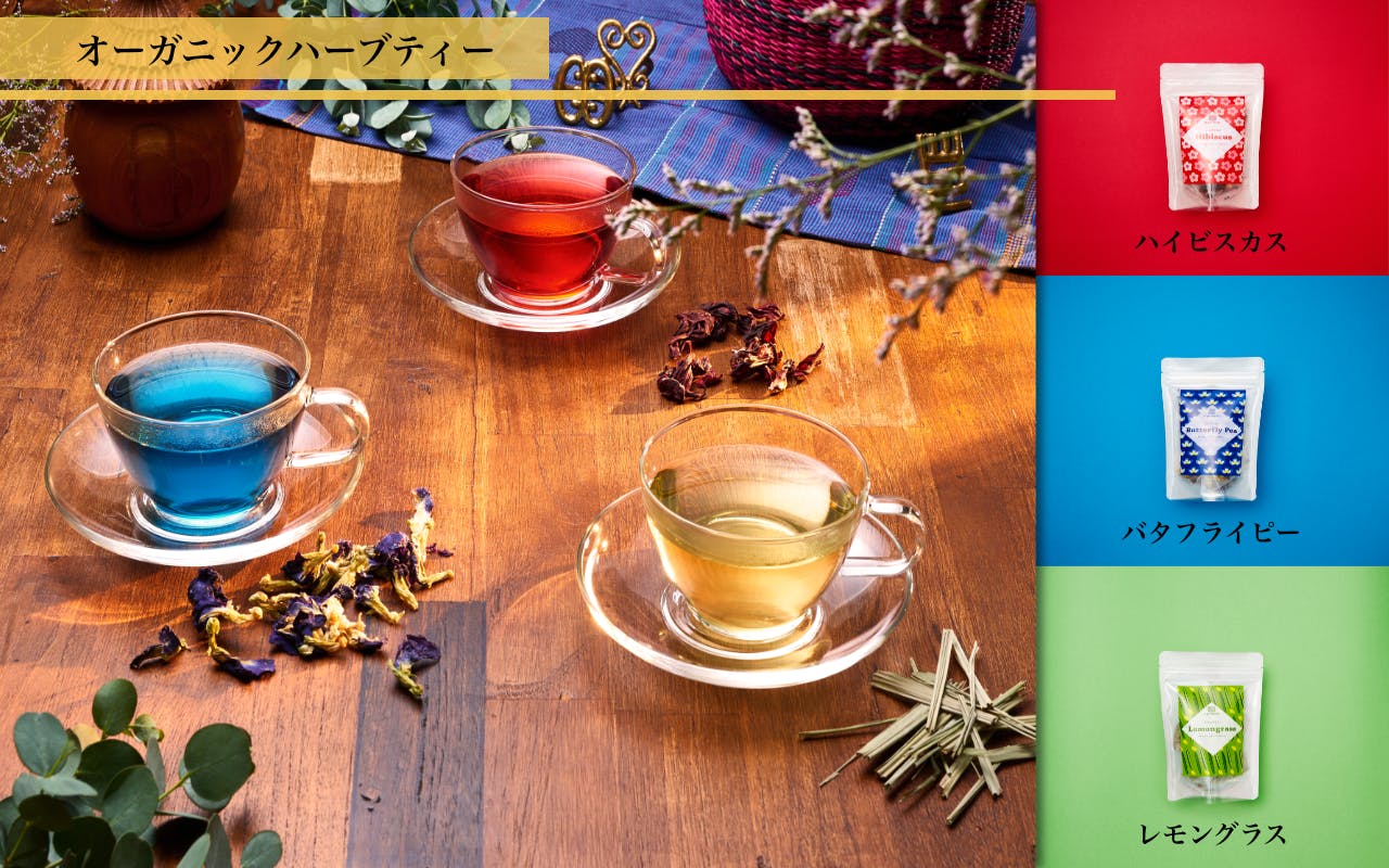 鮮やかな青色が特徴で、眼精疲労に効果があると言われます。アントシアニンが豊富で、レモン等酸性のものを入れると、青色から紫色に変化する様子も楽しんでいただけます。