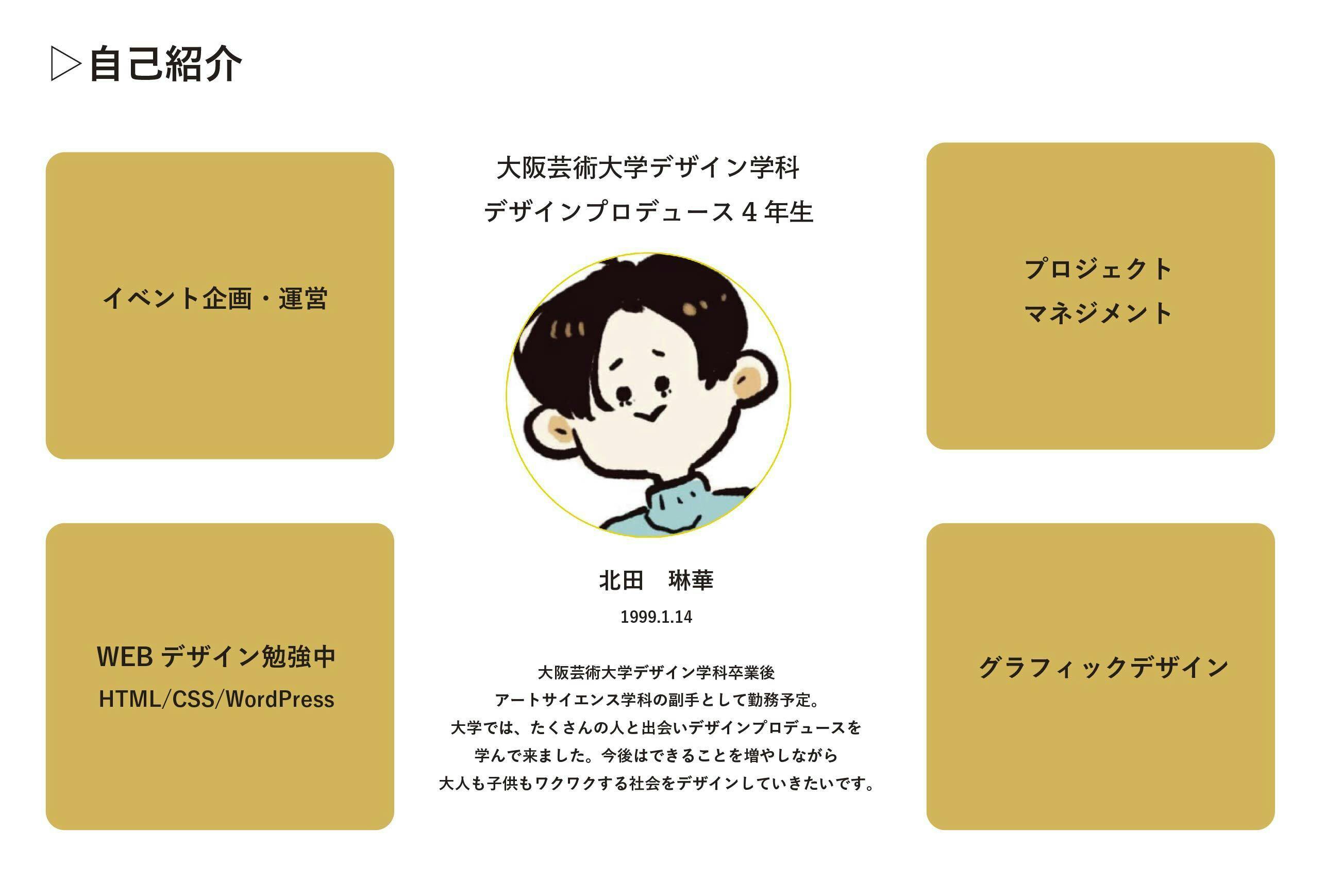 皆さんこんにちは! Ohana代表の北田です。大阪芸術大学デザイン学科の現4年生です。
