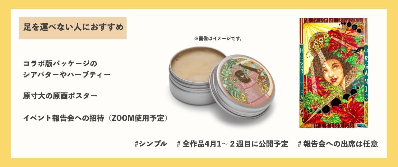 「足を運べない人におすすめ」のリターンに関しまして、4月2週目末までに、全作品のビジュアルが公開されます。それと同時に、こちらのリターンが追加されますので、コラボ版パッケージをゲットされたい方は、本追加リターンをお見逃しなく!!
