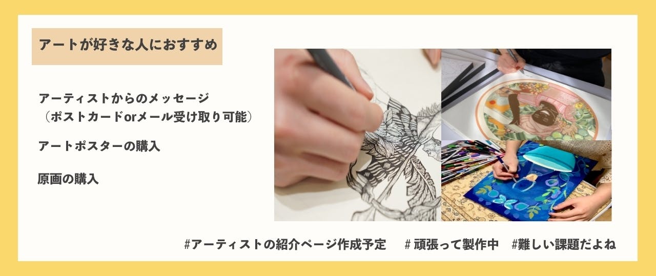 大阪芸術大学の学生たちが自分の作品を持ち寄り、他学科の学生や大学外部の方々と繋がれるコミュニティがあればもっと「芸術」を学ぶ学生達の可能性が広がり、素敵な社会を共創することができるのでないかと考え『Ohana』というWEBサイトをプラットフォームとして創りました。