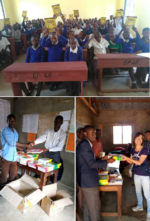 2017年から2年間かけて7教科(算数、英語、地理、歴史、スワヒリ語、理科、社会)合計1060冊と地図帳60冊を寄贈、(アトラスの地図帳に関しては先生自身も見たことがなく感動されました)