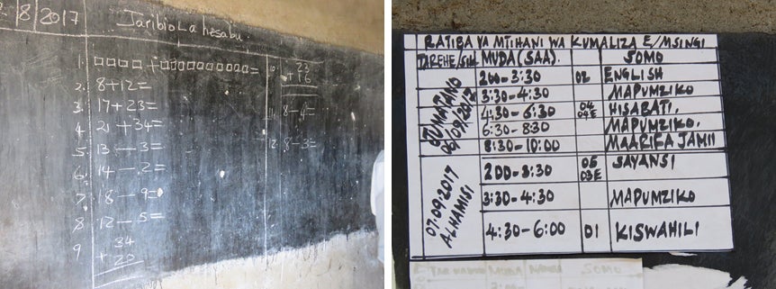 教科は算数、英語、地理、歴史、スワヒリ語、理科、社会、読み、書きです。
