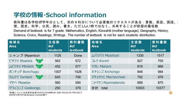 また、タンザニアの小学校は7年制、高学年の生徒が多いほど必要とされる教科書は多くなります。