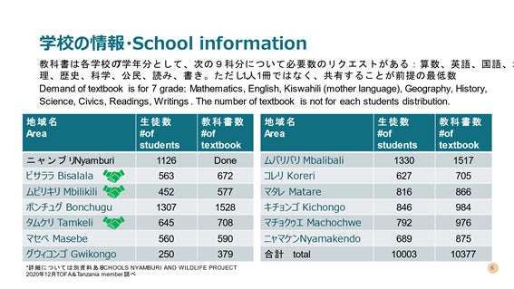 皆様おひとりおひとりの暖かい想いが子供たちによりよい教育の機会を与え、もっと勉強したいという思いにつながり、将来の夢が膨らむことでしょう。さらにそんな子供たちの姿を見て、ニャンブリ村で起こったように、親たちや村の大人たちの意識もかわるでしょう。そうすることで、密猟が減り、大人たちも夢を持てるようになる、私たちの地球や未来に何らかの形で貢献できると信じています。