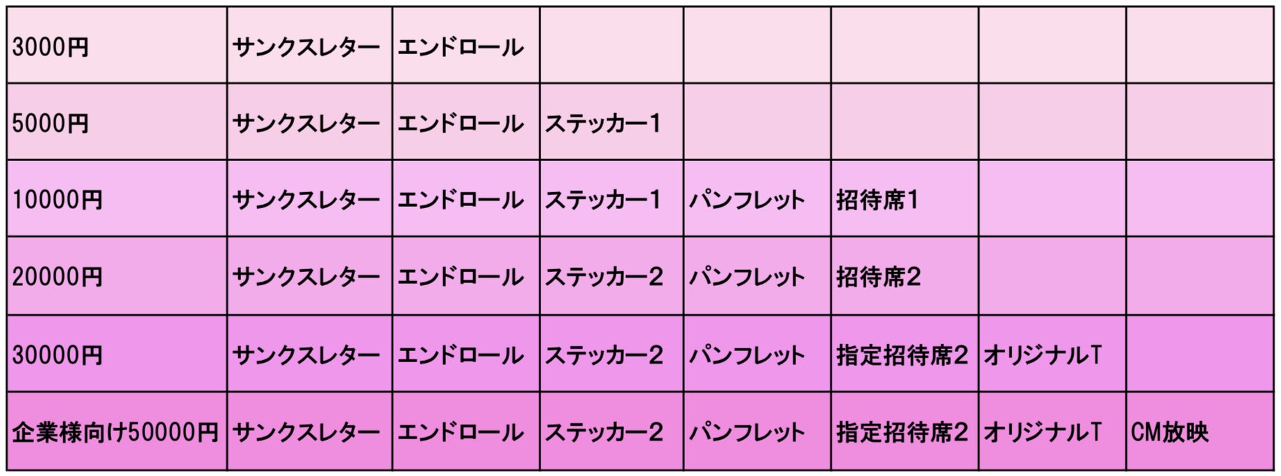 また、ご支援いただきました皆様には、以下のリターンと最高のステージで恩返しいたしますことをお約束します。