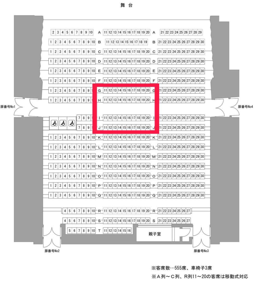 30000円ご支援いただいた方には、客席中央部の指定席をこちらでご用意させていただきます。