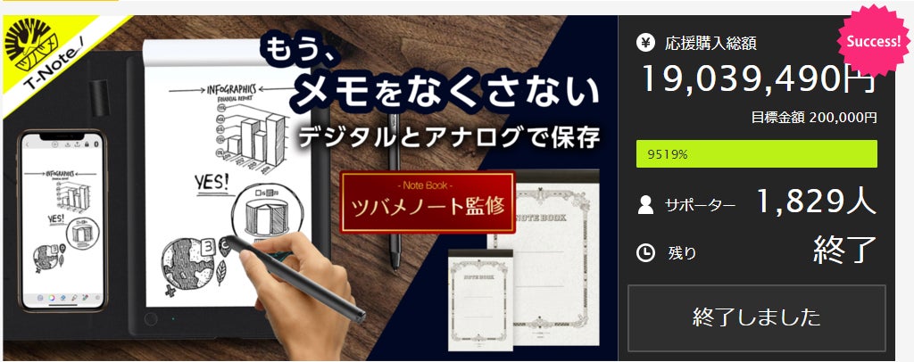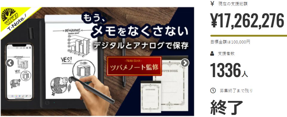 2024/01/26 21:00お世話になります。MKトレードです。■ライフハッカーで紹介されました!タブレットやスマホで手書きデータを管理できるようになりましたが、「やっぱり紙とペンで記録したい!」そんなワガママを叶えてくれるガジェット文具として『T-Note2』を紹介していただきました♪是非商品レビューを参考にご購入をご検討ください。掲載記事はコチラhttps://www.lifehacker.jp/article/machi-ya-tnote2-end-719281/画期的なタブレット!『T-Note2』おかげさまで200人達成!大変多くの方にご支援いただき心より感謝申し上げます。https://camp-fire.jp/projects/view/719281今回のプロジェクト『T-Note2』をご支援いただいたリピーター様に対して「先着50名様 オリジナルポケットメモ帳プレゼント」を開催中!※リピーター様、事前登録いただいた支援者様限定のキャンペーンです。 先着50名様まだご応募可能です!是非ご応募ください!---------------------------------------------------★応募方法★今回のプロジェクト『T-Note2』をご支援のうえ、「メッセージを送る」より下記を記載してご応募ください。【リピーター様】 ・過去にご支援くださった弊社プロジェクトの商品名 ・過去支援ID ・氏名【事前登録者様】 ・事前登録メアドまたはLINE名称 ・『T-Note2』の支援ID最後まで、どうぞよろしくお願いいたします。https://camp-fire.jp/projects/view/719281『T-Note2』プロジェクトスタッフ一同************************************************************追加購入などに便利な「MKTrade限定公開ショップ」もぜひご覧ください♪https://mktrade2.official.ec/ もっと見る