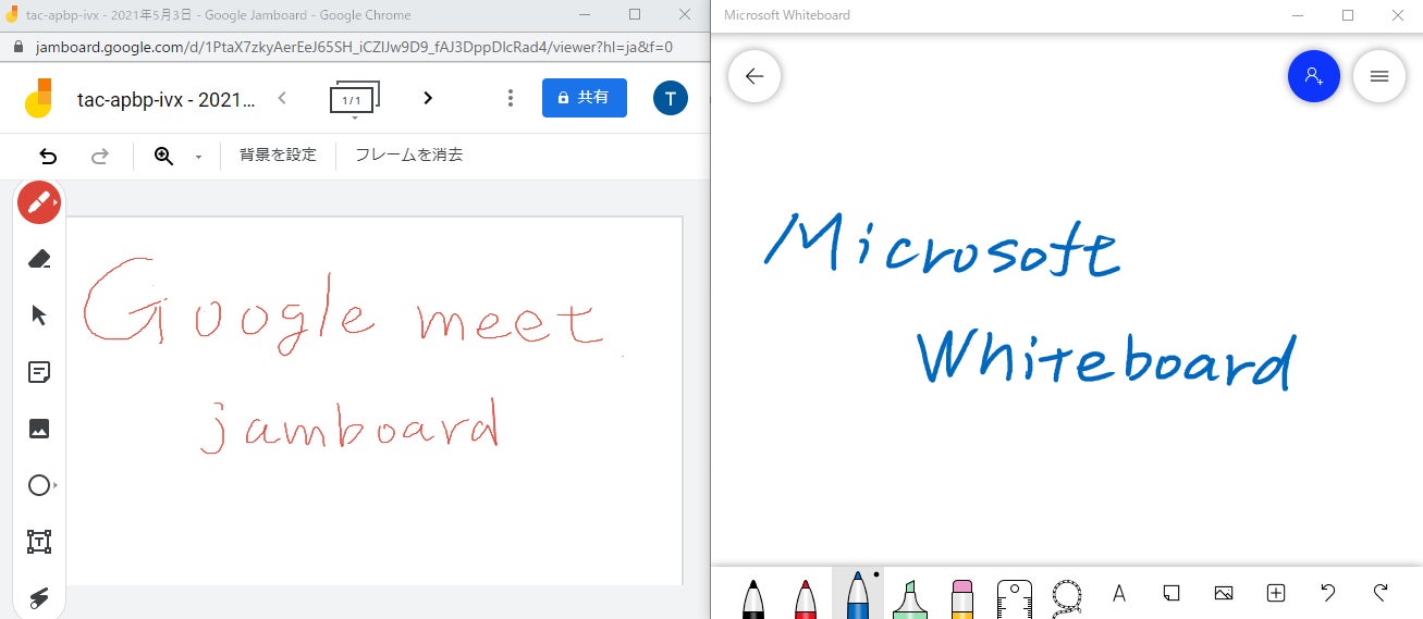 ■zoom、Webexのホワイトボード、Google meetのjambord、Microsoft Whitebordでも「手書きペン」としてお使いいただけます。※パソコンと連携して使用する場合、ペン先の種類やカラーなどの選択はご使用になられるWebツールの機能に左右されます。