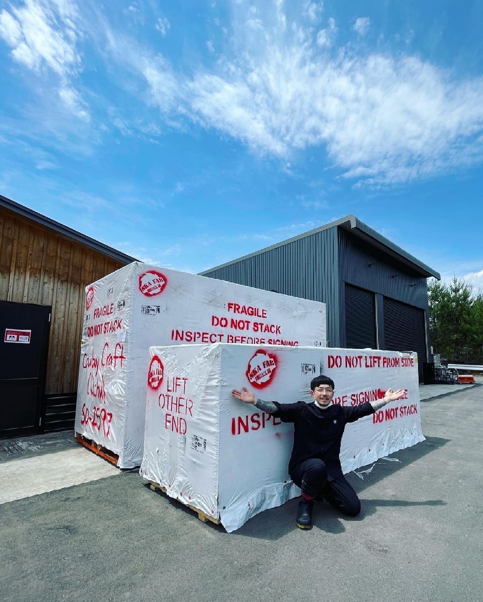 皆さまにご支援していただいた、缶の充填機がやっとやっと届きましたーーー!!