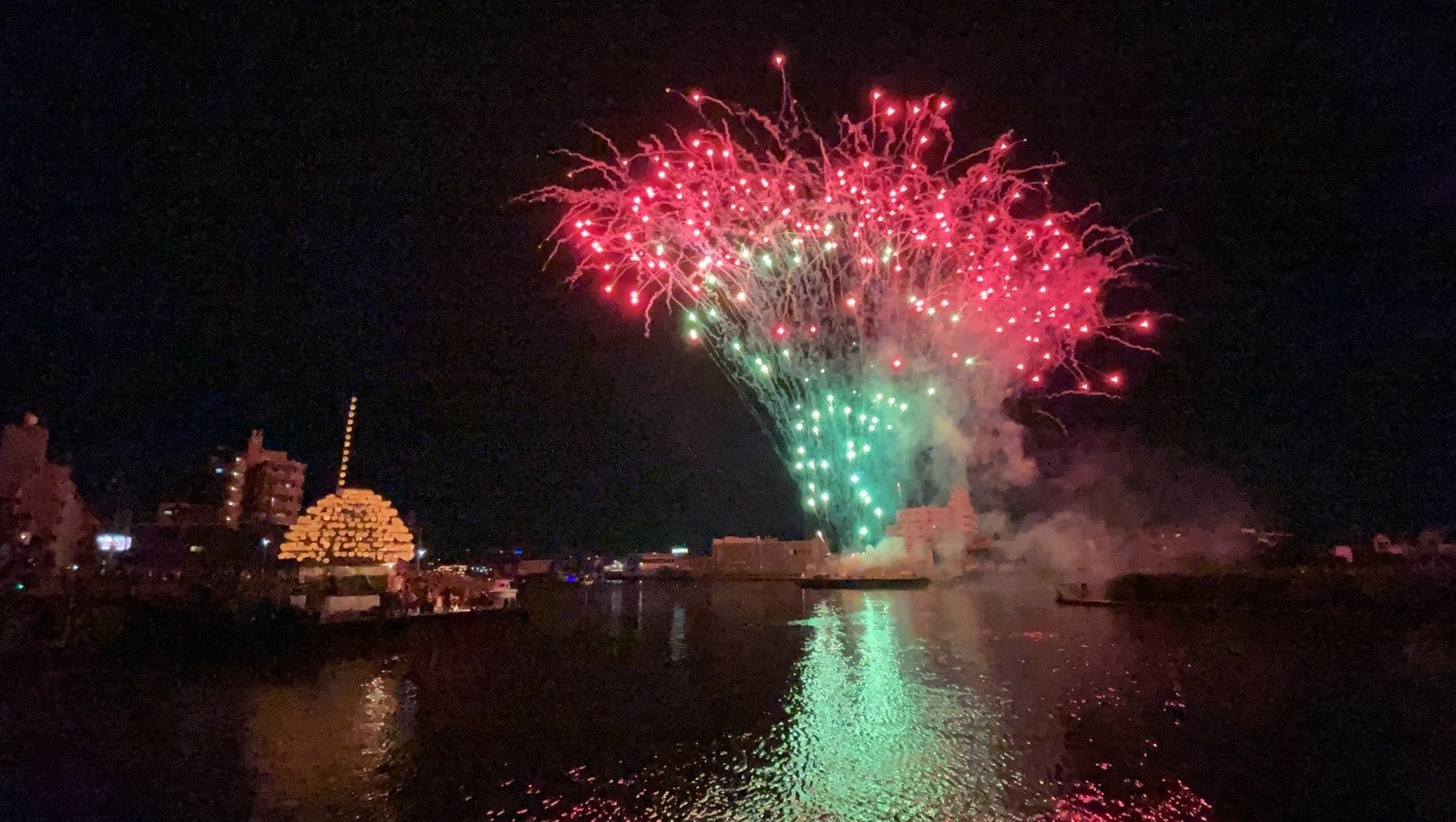 まきわら船に乗船し、 大治太鼓の演奏を楽しみながら花火を見られます 。