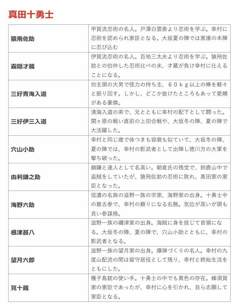 ※一つにつき真田十勇士のうち一人の名前が書かれています