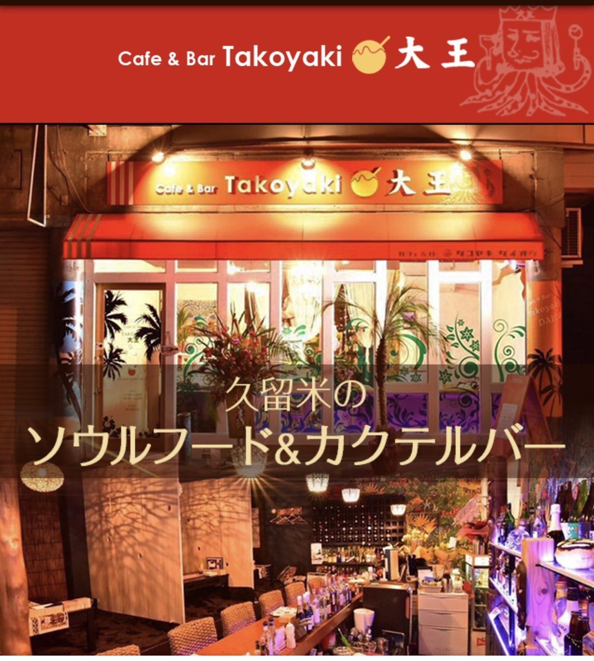 福岡県久留米市田主丸町で「cafe&barたこやき大王」という飲食店をやっています梶原大輔です。