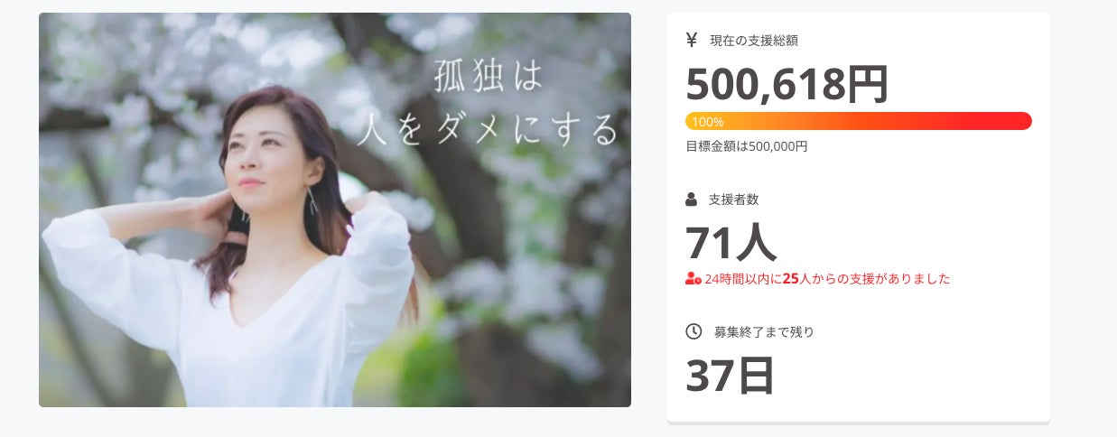 こんなにも早く達成できたのは、支援して頂いた温かい皆さまのおかげでしかありません。