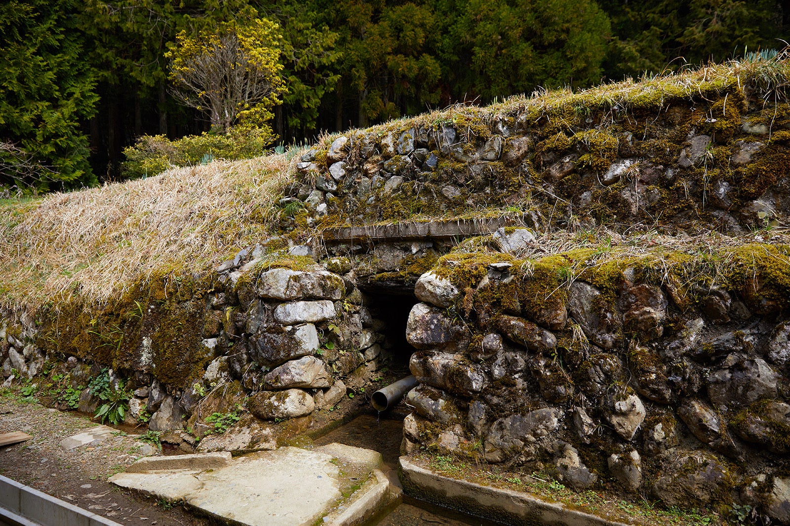 ・古民家のすぐ裏に珍しい横井戸があり、まだ水が湧いています。石田靖さんが取材に来られました。