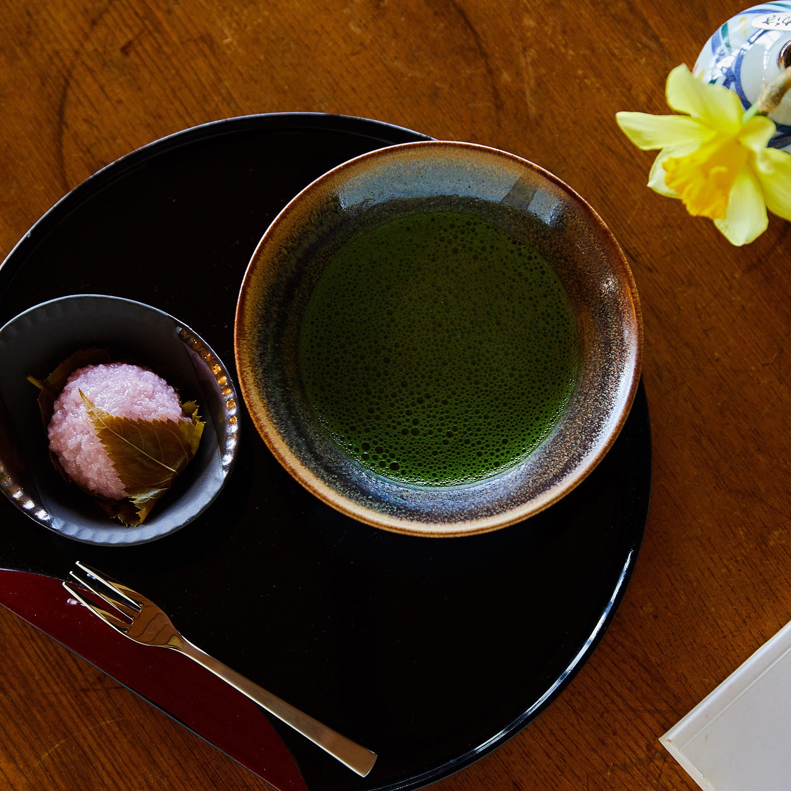 築130年の古民家の縁側に座って、お抹茶と和菓子をお楽しみください。