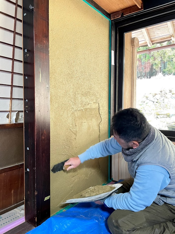 丹波篠山の凄腕左官職人「吉住左官」さんにも高橋さんのご紹介で来ていただくことができ、天然素材でできた気持ちの良い空間になりました。