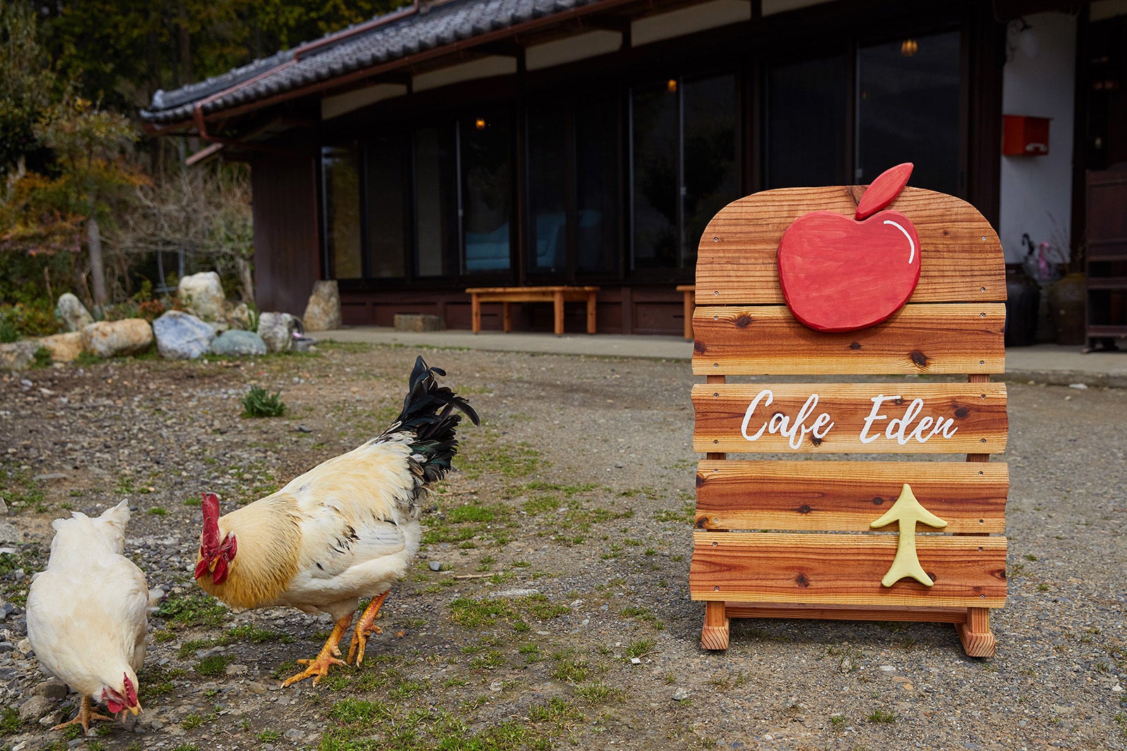 CafeEden(カフェエデン)は、2021年3月に京丹波町大迫(旧和知町)にオープンしました。大迫は和知文楽発祥の地であり、ぼけ封じの天足さんがある、歴史と文化が残る美しい集落です。カフェエデンはこの大迫にある、築130年の古民家を再生し、京丹波町大迫の豊かな自然を感じていただける、くつろぎのカフェです。店主のクスダノリコが自分にとっての理想郷(エデン)を表現しようと考え、お店を作りました。クスダノリコが大の動物好きであり、カフェエデンには動物がたくさんいます。「小型あひるのコールダック」「後藤もみじという種類のニワトリ」「黒猫ジジ」「アカハライモリ」「メダカ」「フトアゴヒゲトカゲ」「リクガメ」など、たくさんの動物達がお出迎えいたします。今後、トカラヤギが仲間入り予定です。