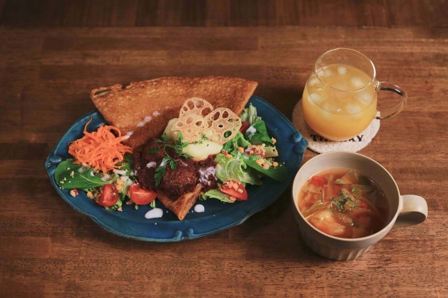 カフェタイムで提供予定の100%米粉クレープレート。